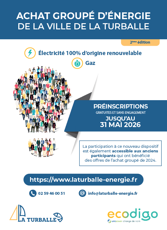 La Ville de La Turballe organise une nouvelle fois, une action collective et concrète pour renforcer le pouvoir d’achat de ses habitants : un achat groupé d’électricité et de gaz. Ce dispositif tend à rassembler un maximum de foyers et de petites entreprises afin de mettre des fournisseurs en concurrence et d’obtenir des offres tarifaires avantageuses qui soient sécurisantes et qui intègrent de l’électricité 100% d’origine renouvelable.
