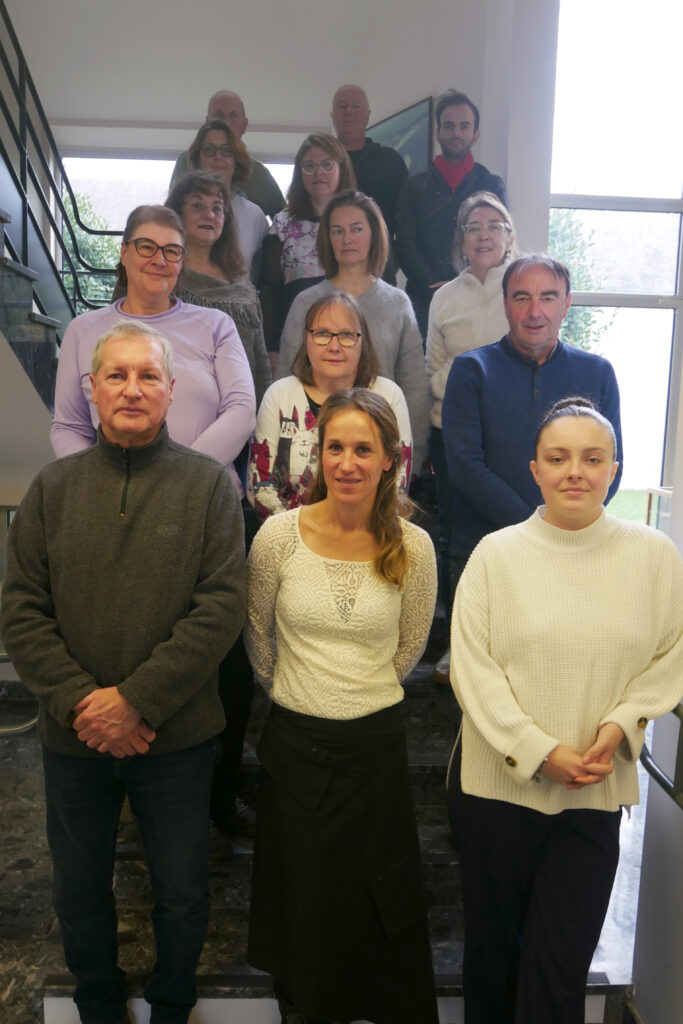 Voici les noms et prénoms des agents recenseurs, de gauche à droite en partant du bas : Alain COSQUÉRIC, Pauline LANDAIS, Lilou BEAUCAMPS, Florence DROIN, Béatrice BERTHO, Thierry DERRIEN, Sylvie FÉTU, Nathalie GOUMY, Magali TRICHET, Axelle APPERT, Céline RICHARD, Jean-Michel PALVADEAU, Bruno ALLANIC, Corentin ROBERT